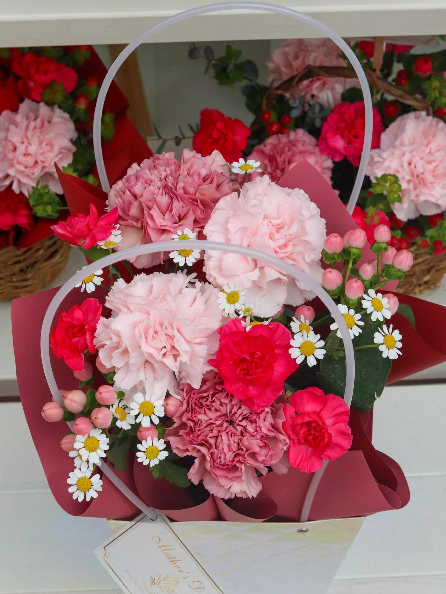 華やかさとやさしさを兼ね備えた、母の日にぴったりの一束に仕上げました。